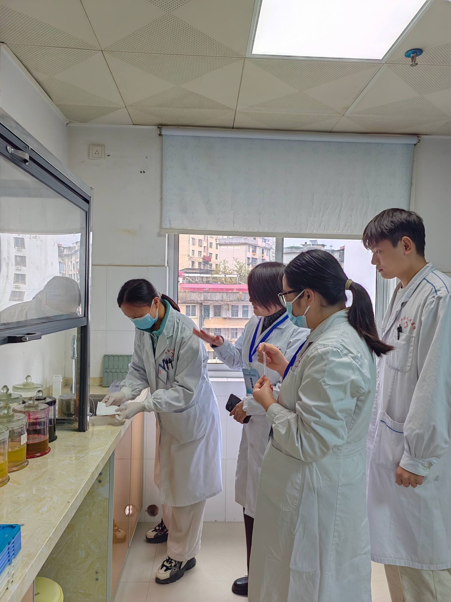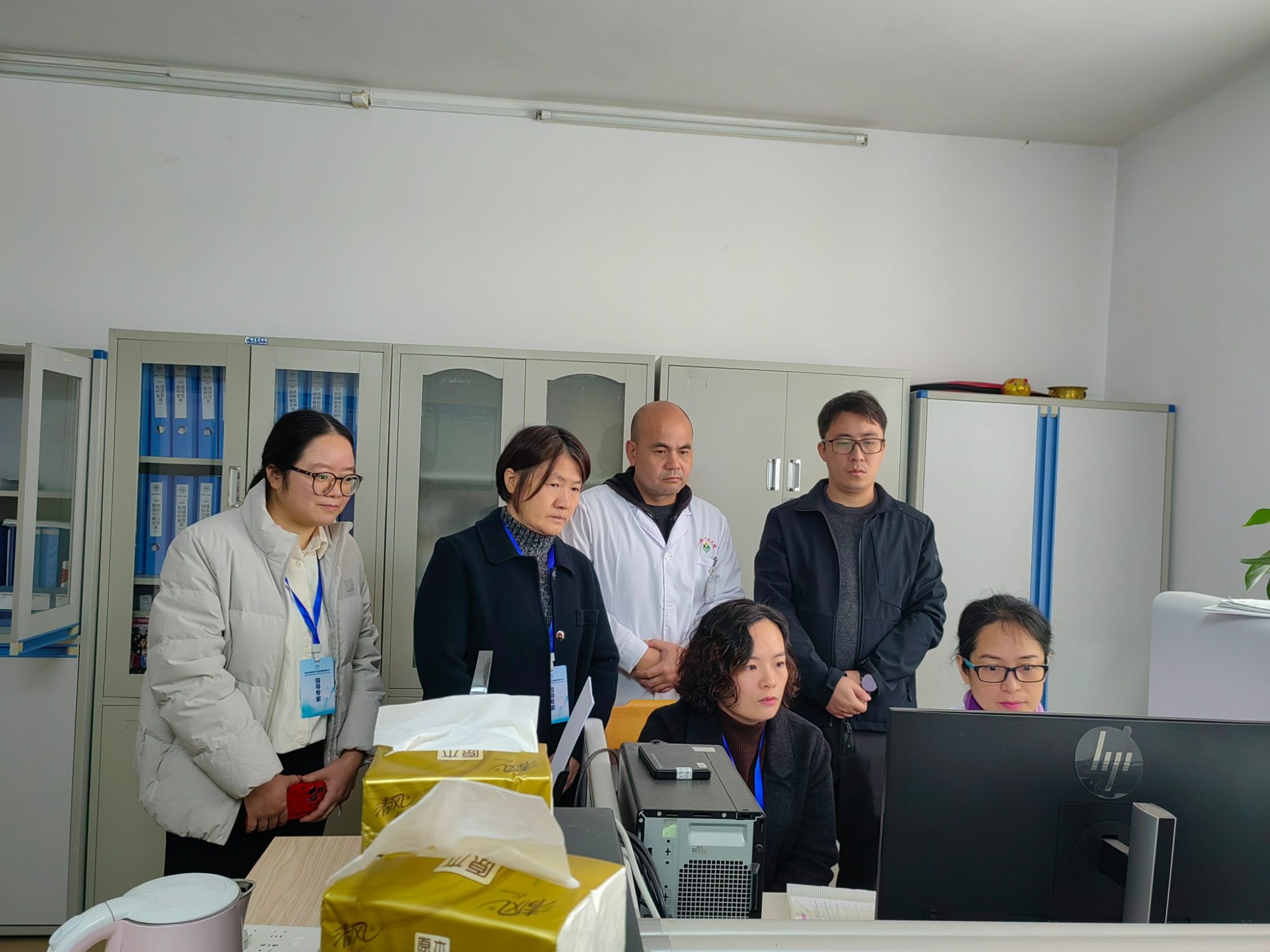 首站抵达阳朔县人民医院。胡洁主任对PAS染色判读进行了现场指导,胡西华组长则针对技术操作问题为科室技术员提供了详细讲解。指导组在检查过程中注重培养科室医生与技术员的综合业务能力,通过带领医生共同阅片、边看边讲的方式,逐步提升其阅片水平与技术操作的规范性。