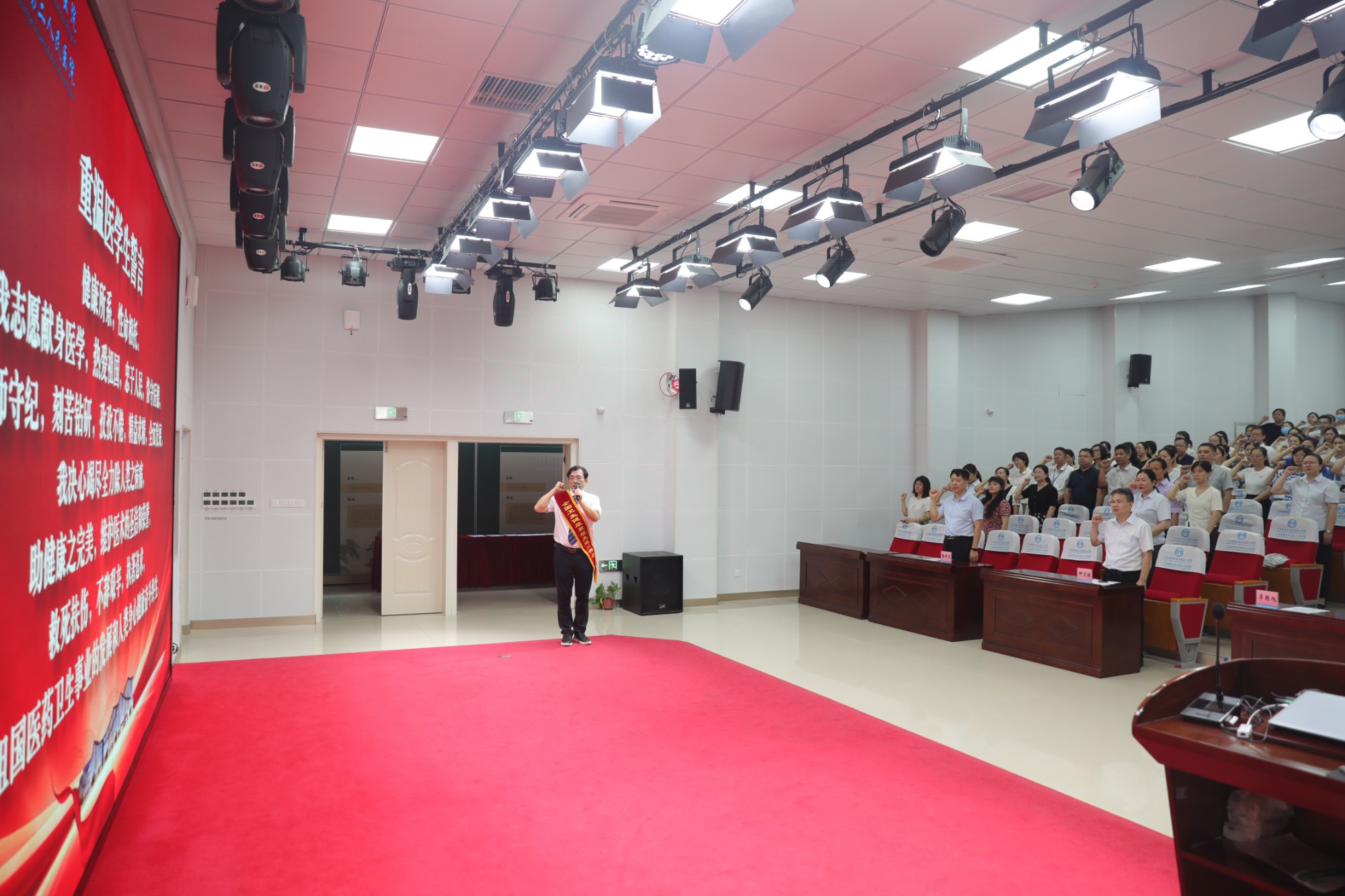 颁奖仪式结束后,大会迎来庄严时刻。全体与会人员起立,在熊荣生的带领下,共同重温了神圣的《中国医师誓言》,铿锵有力的誓言回荡在报告厅,表达了南溪山医院全体医务工作者不忘初心、恪守医德、为守护人民健康矢志奋斗的坚定信念。