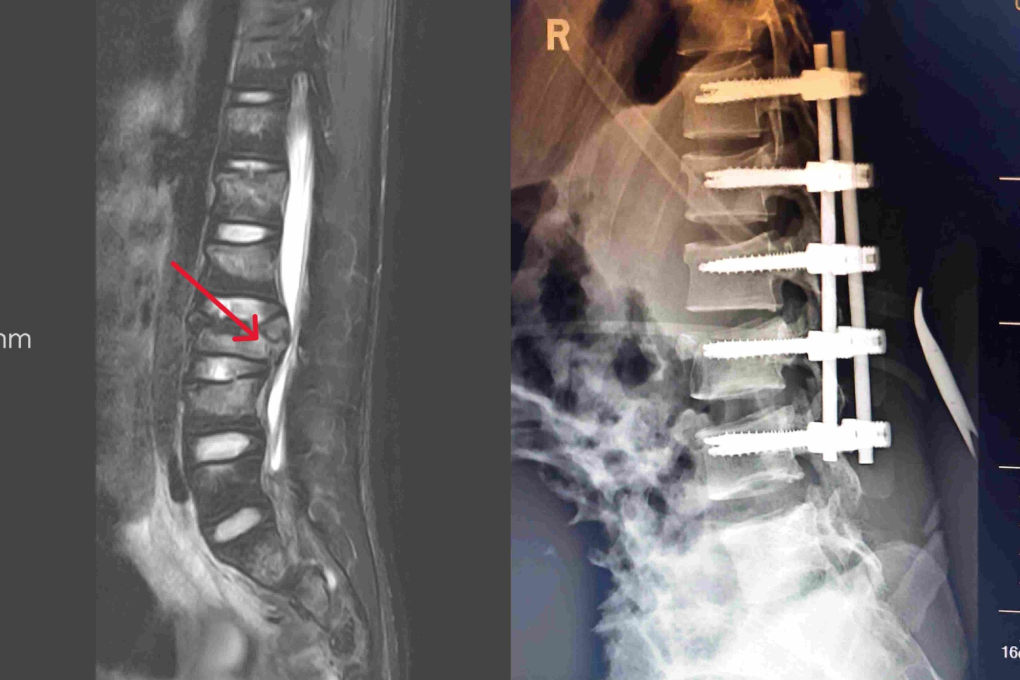 经过数日积极救治,患者休克得以纠正,DIC指标恢复正常,气胸改善,生命体征趋于稳定,已成功度过危险期。病情稳定后,神经外科唐乐剑主任医师团队经全面评估与讨论,为这位年轻患者实施了T12~L4椎弓根固定术联合椎管内骨折碎片取出术。手术顺利完成,有效修复了腰椎结构,为患者日后功能康复奠定了坚实基础。