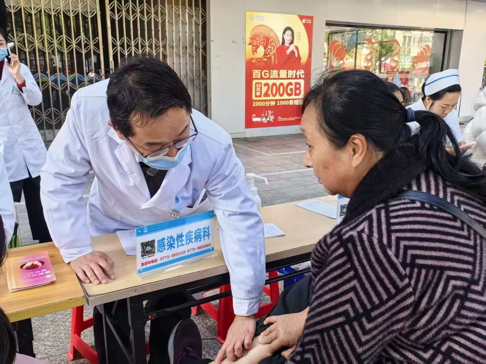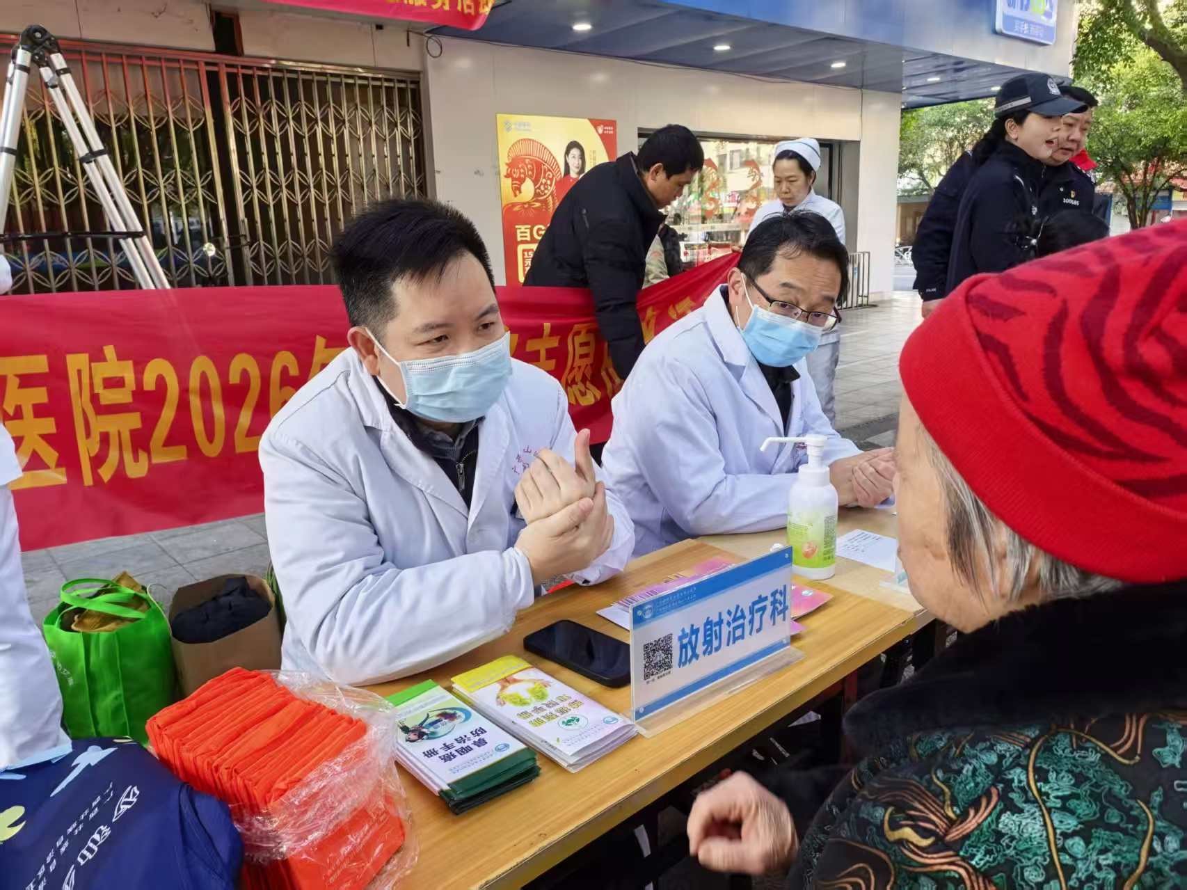 三月春风暖人心,雷锋精神伴我行。3月5日,正值全国第63个“学雷锋纪念日”。为传承弘扬雷锋精神,推动志愿服务走深走实,助力“十五五”良好开局,当天上午,自治区南溪山医院内科第一党支部(老年医学科)、内科第九党支部(感染性疾病科)、内科第十六党支部(全科医学科)、内科第十八党支部(肿瘤放射治疗科)、内科第二十党支部(安宁疗护中心)、中皮康第二党支部(康复医学科)联合桂林市退役军人事务局“八桂军号”志愿服务支队,在丽君社区信义广场开展“学雷锋做志愿 共同奋进‘十五五’” 学雷锋义诊服务活动,把优质医疗服务送到居民家门口。