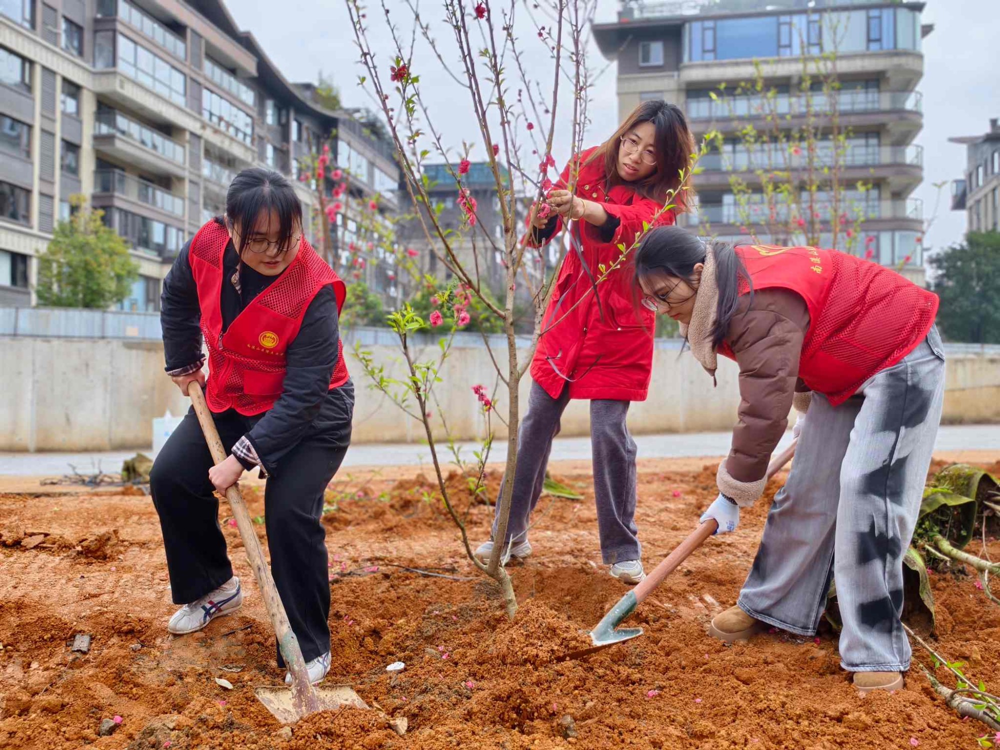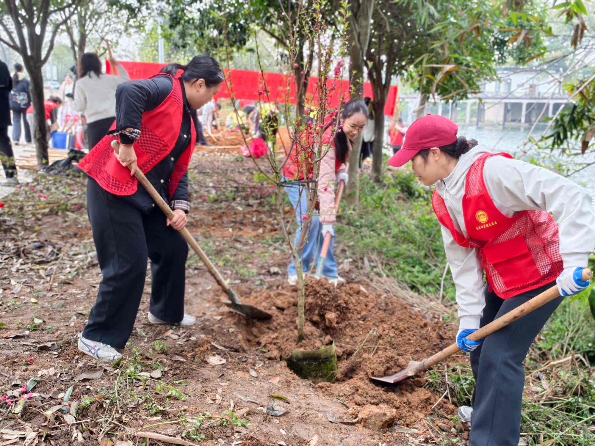 植树现场,来自南溪山医院青年文明号集体的青年志愿者们热情高涨,挥锹铲土、扶苗填坑、培土浇水,大家配合默契,各个环节衔接有序,现场呈现出一派热火朝天的劳动景象。在大家的共同努力下,一株株新绿昂然挺立,为春日的漓江之畔增添了勃勃生机。
