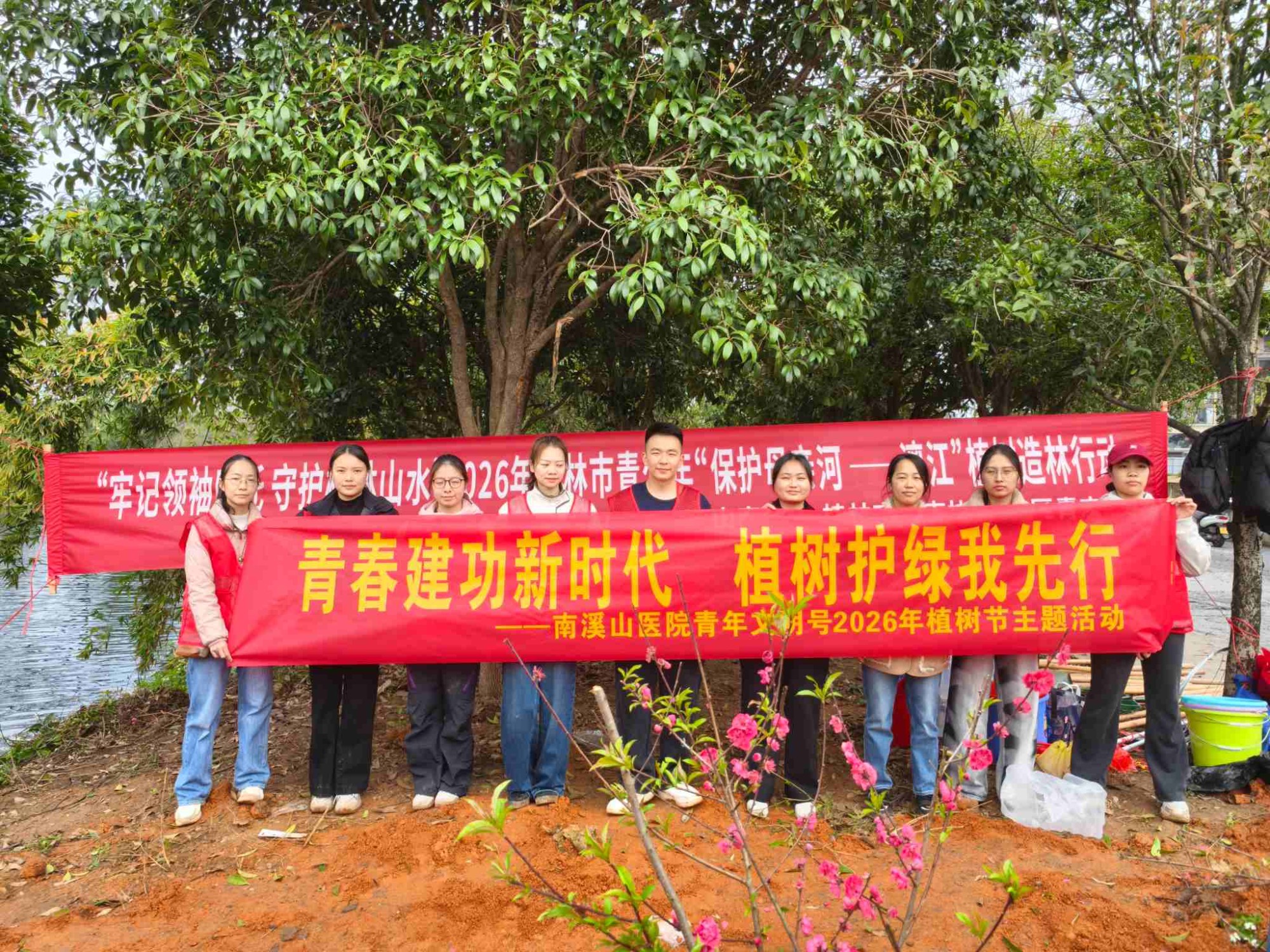 3月10日上午,为深入践行生态文明思想,广西壮族自治区南溪山医院团委积极响应团桂林市委号召,组织青年志愿者赴桂林穿山公园江畔,参与“牢记领袖嘱托 守护桂林山水”2026年桂林市青少年“保护母亲河-漓江”植树造林行动,为建设桂林世界级旅游城市贡献青春力量。
