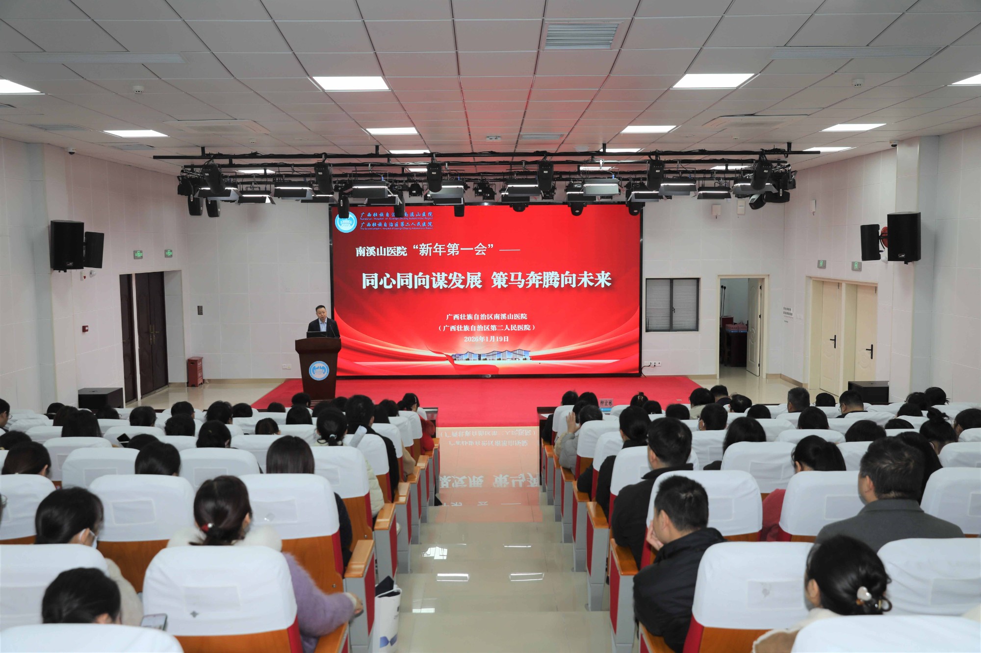 会议强调,2026年是“十五五”规划的开局之年,全院上下要坚持以习近平新时代中国特色社会主义思想为指导,深入贯彻落实党的二十大及二十届历次全会精神,紧扣健康中国战略部署,坚持稳中求进、提质控本增效,为扎实推进健康广西建设、谱写中国式现代化广西篇章提供坚实健康保障。