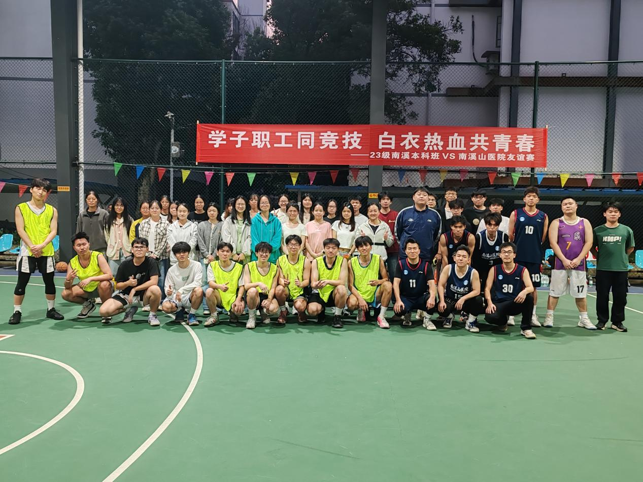 为丰富课余与工余生活,3月30日晚,南溪山医院职工与23级南溪山本科班学子在医院篮球场共同举办了一场“学子职工同竞技,白衣热血共青春”篮球友谊赛。一场兼具热血与温情的对决,由此正式拉开帷幕。