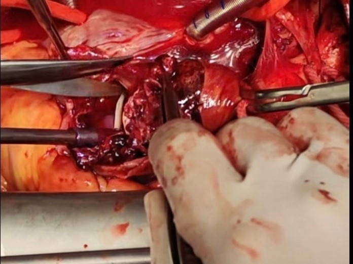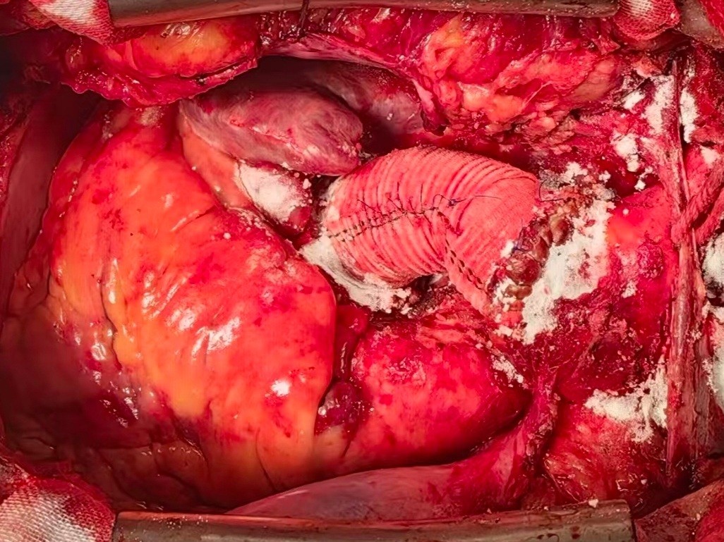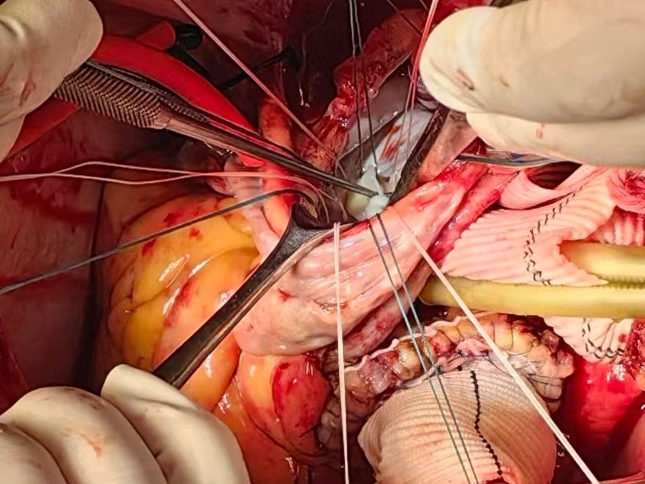 时间就是生命,科室主任潘禹辰第一时间牵头,联动麻醉科、手术室、输血科、影像科等多学科开展紧急会诊。团队精准研判病情、评估风险,量身定制“一站式”复合手术方案,细化应急预案,抢抓救治黄金时间。此次手术需在全麻体外循环、深低温停循环下开展,为心外科顶级高风险术式,在完成人工血管置换的同时,需同步完成主动脉瓣、二尖瓣瓣膜修复(或置换)等多项操作,一台手术解决多重致命病灶,操作难度远超常规手术。