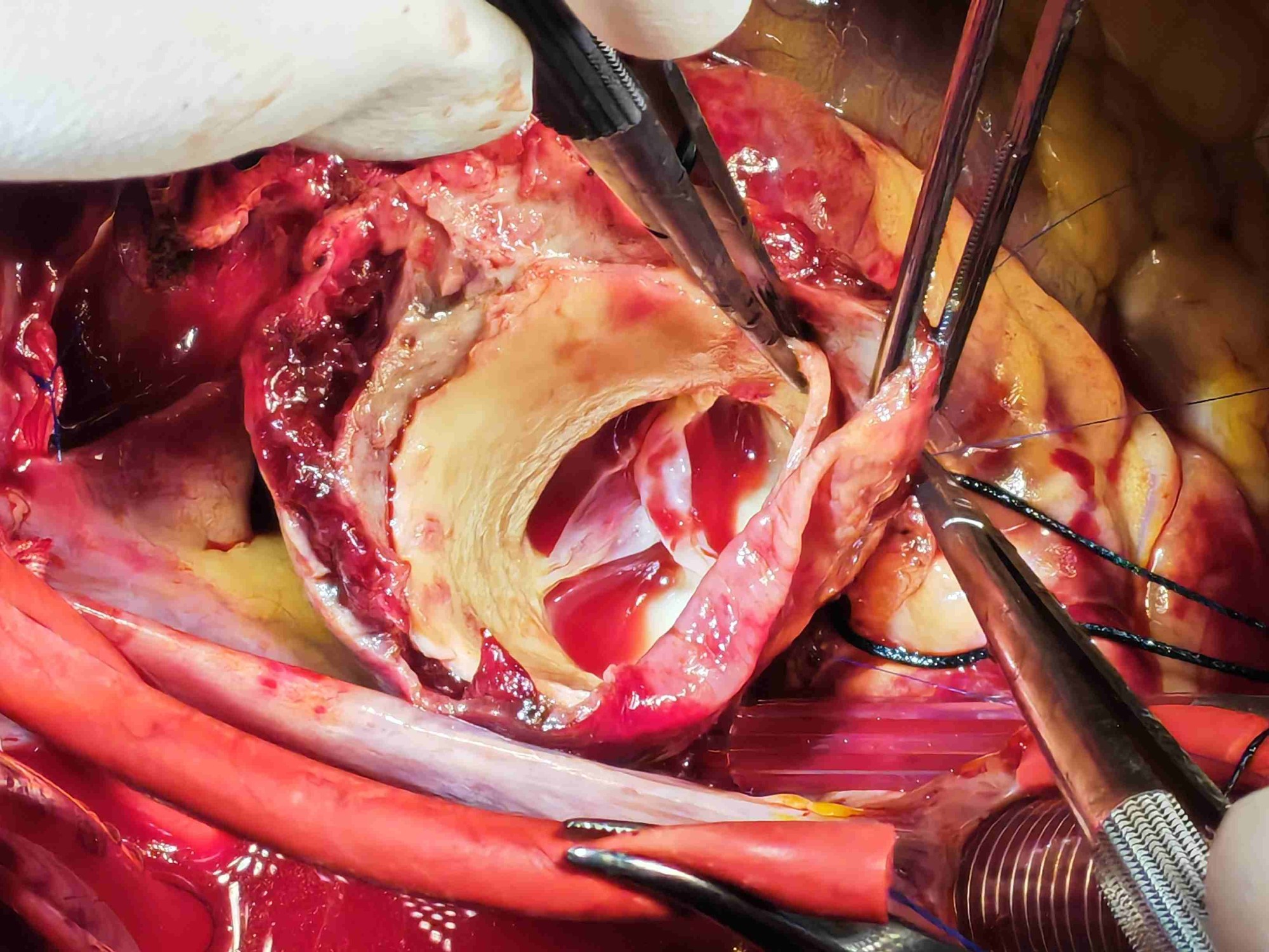 术中,潘禹辰主任带领团队凭借精湛技艺精准操作,游离病变血管、清除夹层血肿、吻合升主动脉人工血管、修复受损的主动脉瓣及二尖瓣瓣膜,通过人工腱索植入及瓣环成形,完美保留心脏原生结构助力远期康复。(相比二尖瓣换瓣手术,瓣膜修复手术完整保留了二尖瓣复合体,避免换瓣术后长期抗凝并发症,明显改善远期预后)。(超链接:二尖瓣修复)。团队默契配合攻坚克难,历经近10小时鏖战,成功闯过多重高危关卡,圆满完成手术。
